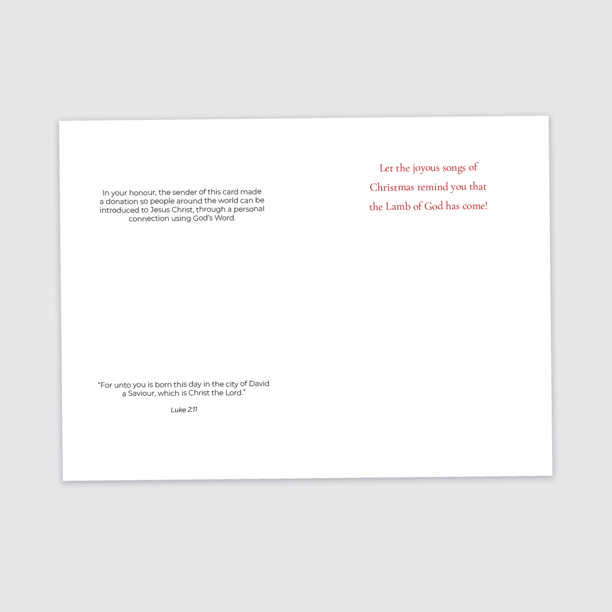Let the joyous songs of Christmas remind you that the Lamb of God has come!